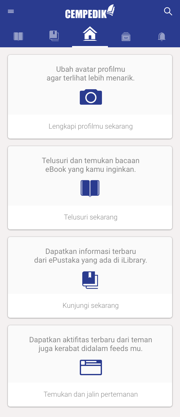 Library merupakan katalog buku serta berperan sebagai store dalam CEMPEDIK. Library terdiri dari beberapa fitur seperti kategori, search book, recommended book.