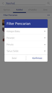 Untuk mencari buku berdasarkan kategorinya, klik salah satu kategori yang ada di samping kiri. Terdapat kategori buku umum, magazine, dan komik