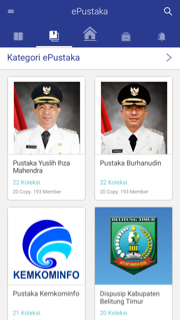 ePustaka merupakan kumpulan instansi atau penerbit yang sudah bekerjasama dengan CEMPEDIK. Perhatikan gambar diatas, didalam halaman ePustaka, terdapat beberapa list penerbit/instansi yang sudah bekerjasama. Untuk masuk ke halaman ePustaka silakan pilih tab �ePustaka� yang ada di library.